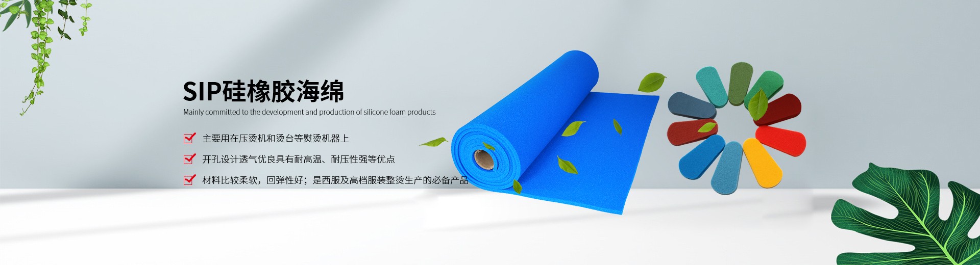 我公司生產的硅膠海綿(開孔)系列產品具有耐高溫、透氣性好、耐壓性強等優(yōu)點,是西服及高檔服裝整燙生產的必備產品。硅膠發(fā)泡板(閉孔)系列產品具有發(fā)泡均勻,耐高溫、耐壓性能好,其中新研制開發(fā)的針孔浮點硅膠發(fā)泡板攻克了一般產品的浮點不飽滿的技術難題,一般產品的浮點不飽滿,容易擋住透氣孔,造成吸風效果不良。我司的產品具有更好的透氣性和回彈性,以及更長時間的試用壽命。